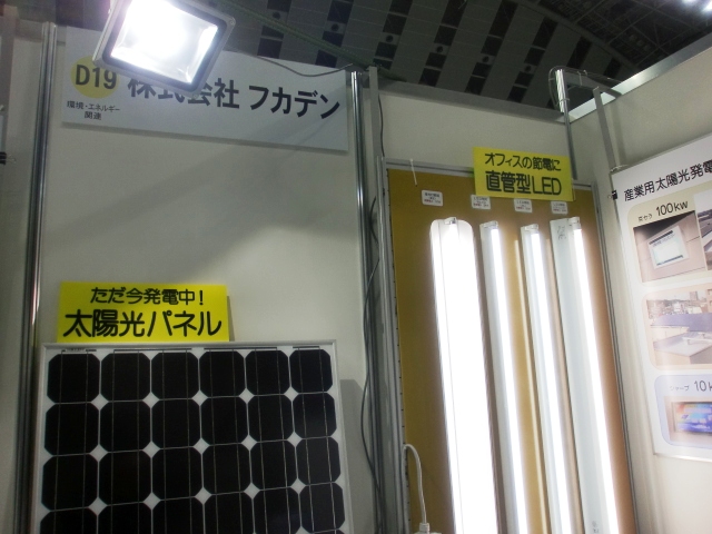 節電としてLED照明、創電として太陽光発電、新製品のリチウムイオン蓄電システムでした。