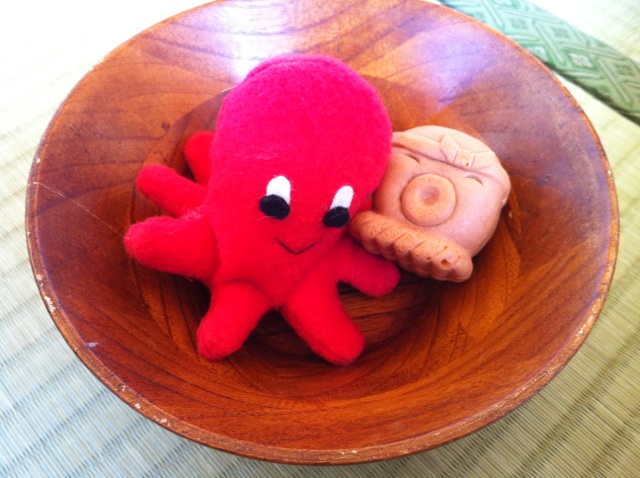 大好きなタコまんじゅうもゲット!※ぬいぐるみは自作のものです笑