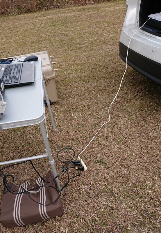 ある程度給電ケーブルを引き出してから、ドローンと接続して準備完了!